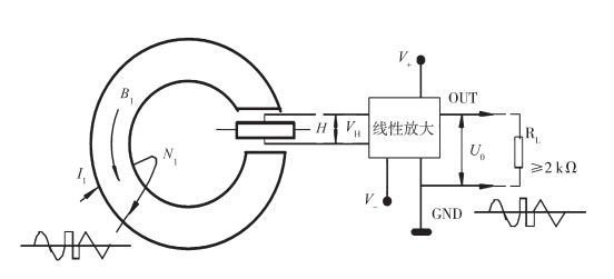 霍爾電流傳感器以霍爾元件為核心,用于隔離檢測(cè)電流的傳感器。當(dāng)電流流過(guò)一根導(dǎo)線時(shí),將在導(dǎo)線周圍產(chǎn)生磁場(chǎng),磁場(chǎng)的大小與流過(guò)導(dǎo)線的電流大小成正比,這一磁場(chǎng)可以通過(guò)軟磁材料來(lái)聚集,然后由霍爾元件來(lái)檢測(cè),用霍爾元件在磁芯氣隙處感應(yīng)原邊電流IP的大小和方向。霍爾元件的輸出電壓,經(jīng)過(guò)信號(hào)處理電路,使傳感器的輸出可以反映被測(cè)電流的大小。